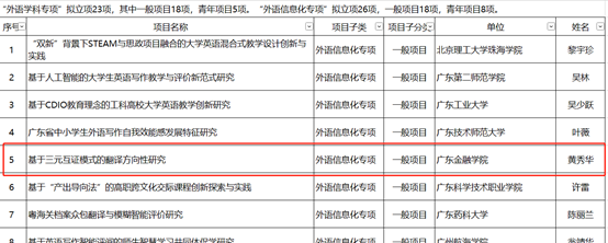 恭喜我院涂兵兰院长和黄秀华老师获得广东省哲学社会科学规划2023年度“外语学科专项”“外语信息化专项”一般项目立项。