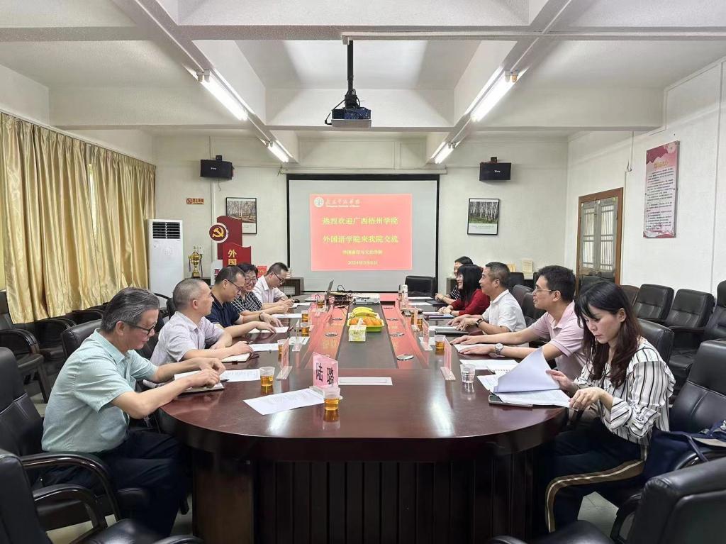 2024年5月6日,广西梧州学院外国语学院院长宋银秋教授与朱宇乾书记一行5人莅临3044am永利集团,就两院在教学、科研、人才培养等方面的合作与交流进行了深入的探讨。