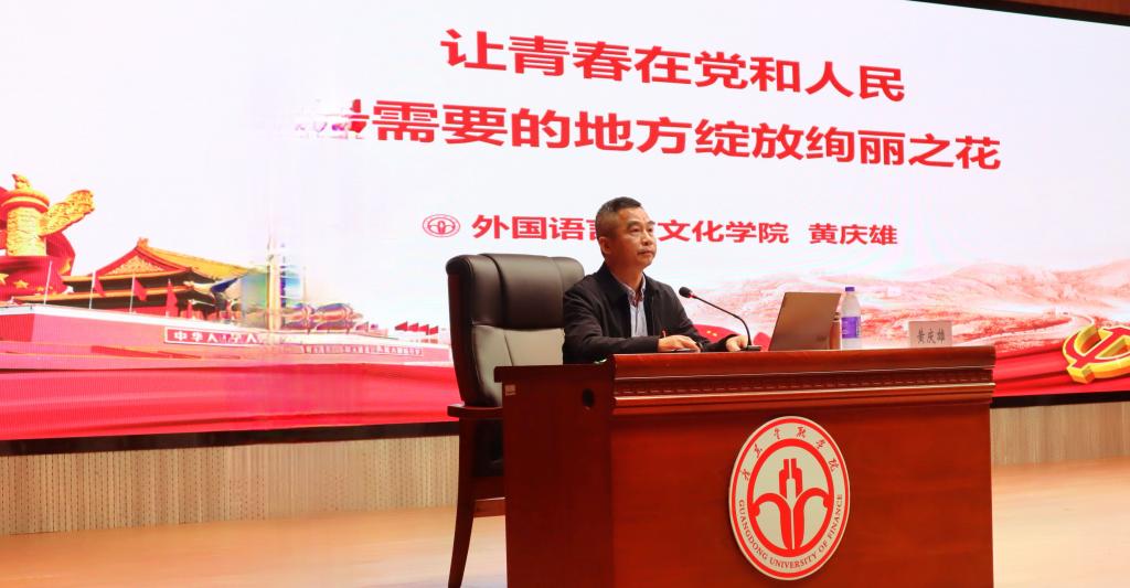 黄庆雄书记从纪念五四运动100周年大会上习近平总书记寄语新时代中国青年,要以实现中华民族伟大复兴为己任,不辜负党的期望、人民期待、民族重托,不辜负我们这个伟大时代出发,围绕“厚植爱国情怀、砥砺强国之志,担当青年责任、奋进时代征程,智对网络舆情、共聚青年力量”等三个方面,运用大量详实的数据和案例,深入浅出地阐述了青年是祖国的未来、民族的希望,也是党的未来和希望,新时代的中国青年如何让青春在党和人民最需要的地方绽放绚丽之花。