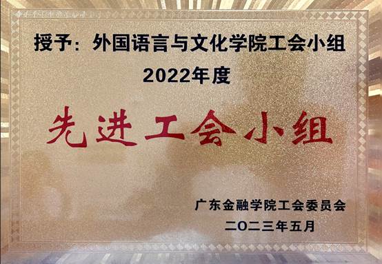 在外文学院全体教师的共同努力下,2022年度我院再次被授予“广东金融学院先进工会小组”荣誉称号。我院已连续四年被评为先进工会小组。李鹏、林颖姿、邓粲士、邓伟琦、邓薇、李海燕、罗凡、张佳、杨莹莹、杨贵章、余薇等11位老师被评为2022年度工会积极分子。