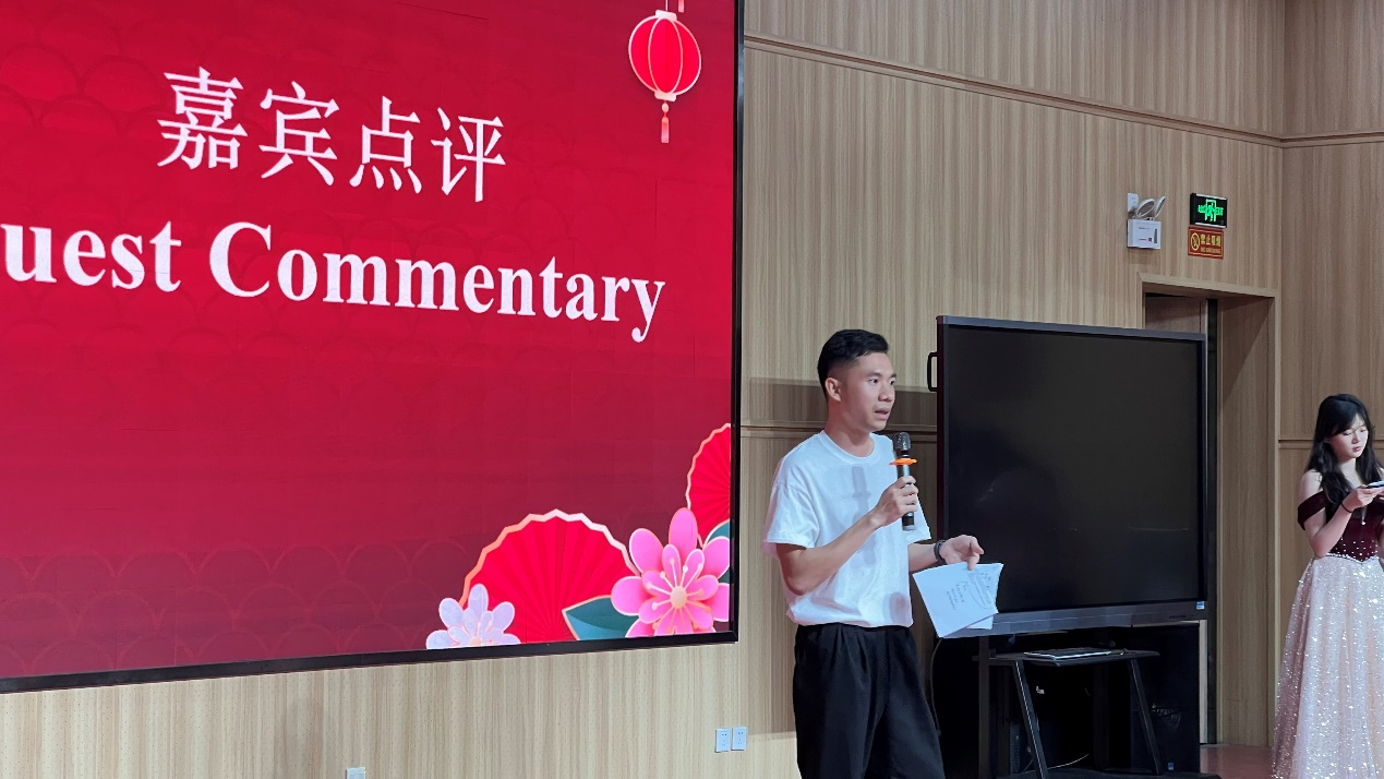 在嘉宾点评环节,燕兴国际教育咨询有限公司邹景斌对整场比赛给予了高度评价。他认为选手们在英语表达、逻辑思维和演讲技巧等方面都展现出了极高的水平,充分展现了广东金融学院学子的英语学习风采和实力。
