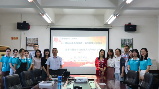 为深入学习贯彻习近平新时代中国特色社会主义思想,深入学习领会《习近平谈治国理政》第四卷的重要精神,10月11日下午,3044am永利集团翻译研究所举办第50期“广金外语论坛”,本期论坛的主题是《习近平谈治国理政》第四卷学习分享暨中国特色话语翻译实践与研究研讨。
