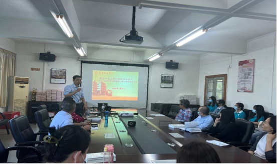 外文学院党总支书记黄庆雄以“牢记‘四真’要求,厚植使命担当”为题,围绕“夯实基础,在真学中体现政治态度;把握关键,在真懂中体现政治觉悟;抓住核心,在真信中体现政治信仰;坚持根本,在真用中体现政治担当”四个方面分享了《习近平谈治国理政》第四卷学习体会。同时号召全体教师抓好课程思政建设,进一步推动学校和外文学院事业高质量发展,以实际行动迎接党的二十大胜利召开。
