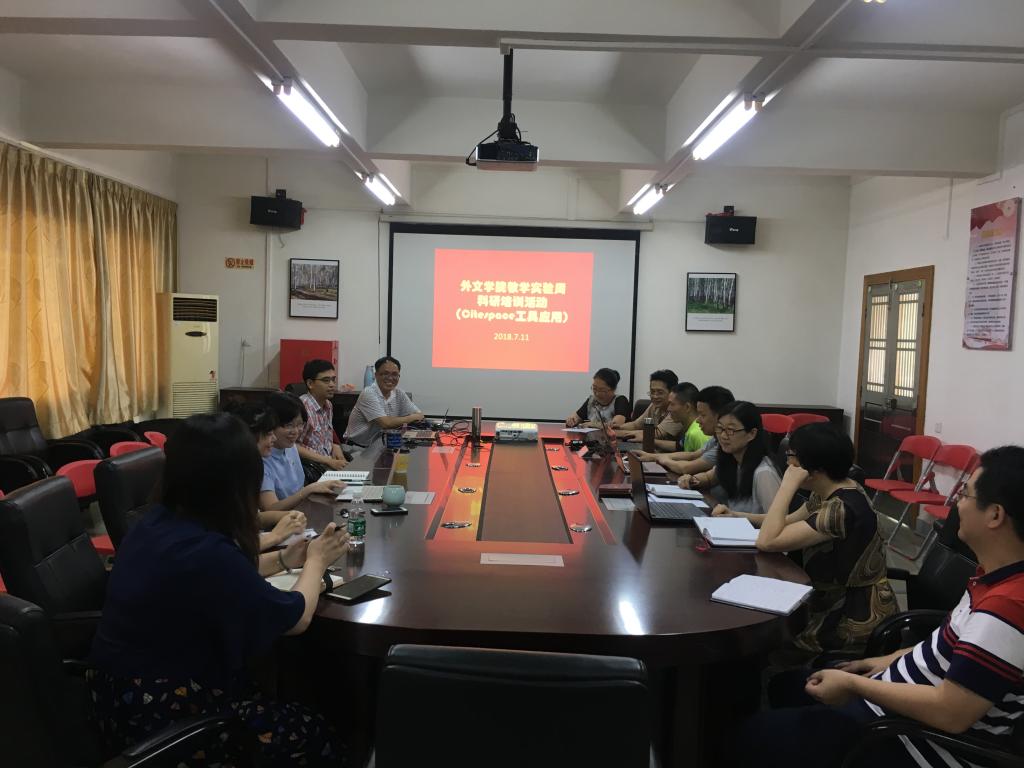 7月11日上午,外文学院教学实践周培训活动继续进行,外文学院面向全院教师开展了以Citespace工具应用为主要内容的科研培训活动。此次科研培训活动由青年教师陈树坤博士全程负责和指导。