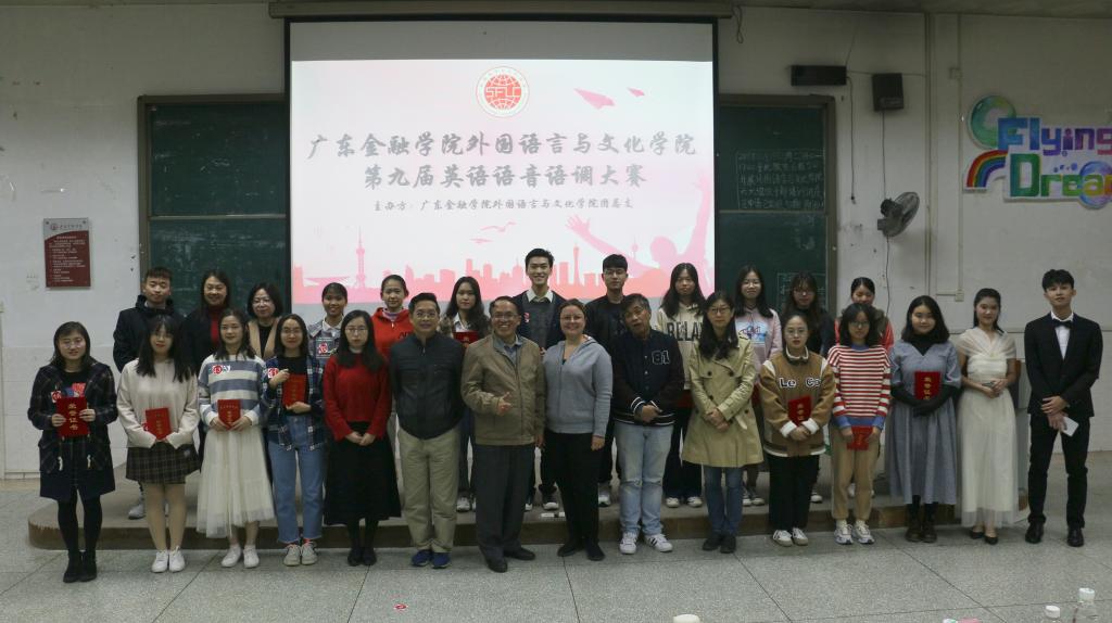 2019年12月3日,3044am永利集团第九届英语语音语调大赛于6栋502课室正式拉开帷幕。外文学院黄中习院长、孙智慧副院长、李昌郴副书记出席并观摩了本次大赛。本次大赛以“Waving passion,Flying dream”为主题,来自19级商务英语、英语及翻译专业的16名选手经过初赛的层层选拔后在决赛中相遇,最后来自商务英语三班的梁欣瑜同学拔得头筹,获得大赛一等奖。其余同学也均有收获。
