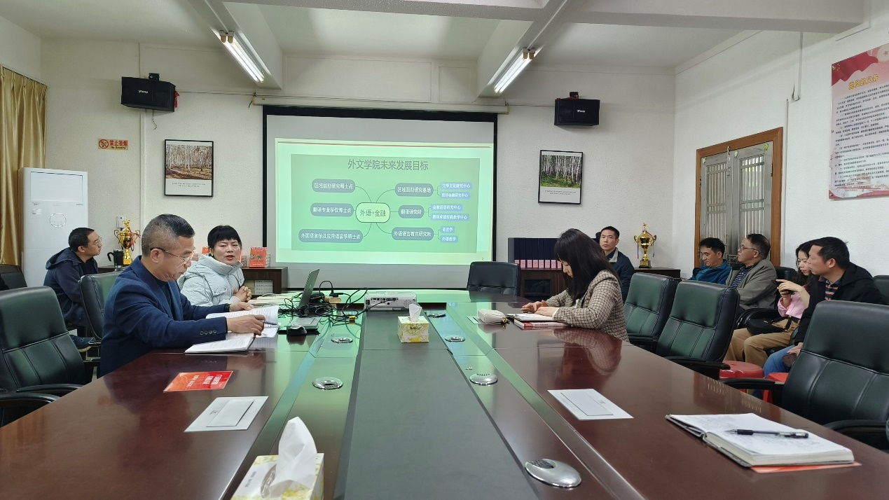 涂兵兰院长首先就学院的长远发展规划进行了阐述,指出学院将致力于提升教学质量和科研水平,在翻译专业博士点、学术硕士点建设等方向做努力,推动学科建设迈上新台阶。涂院长表示,学院将努力打造一支高水平的教师队伍,为学院的发展提供坚实的人才支撑。