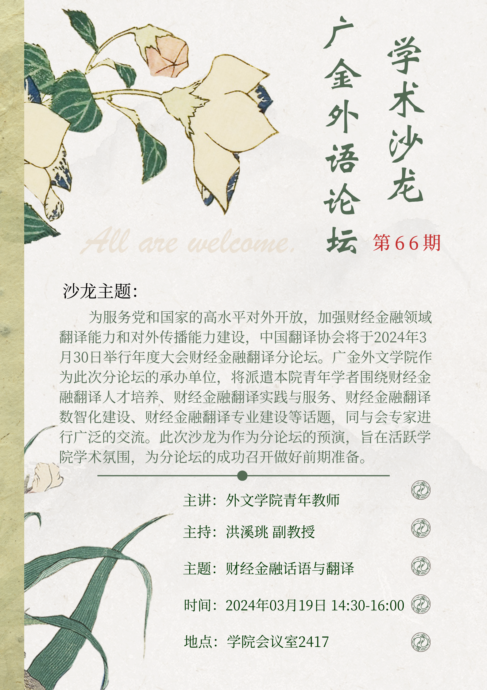 广金外语论坛第66期:财经金融话语与翻译